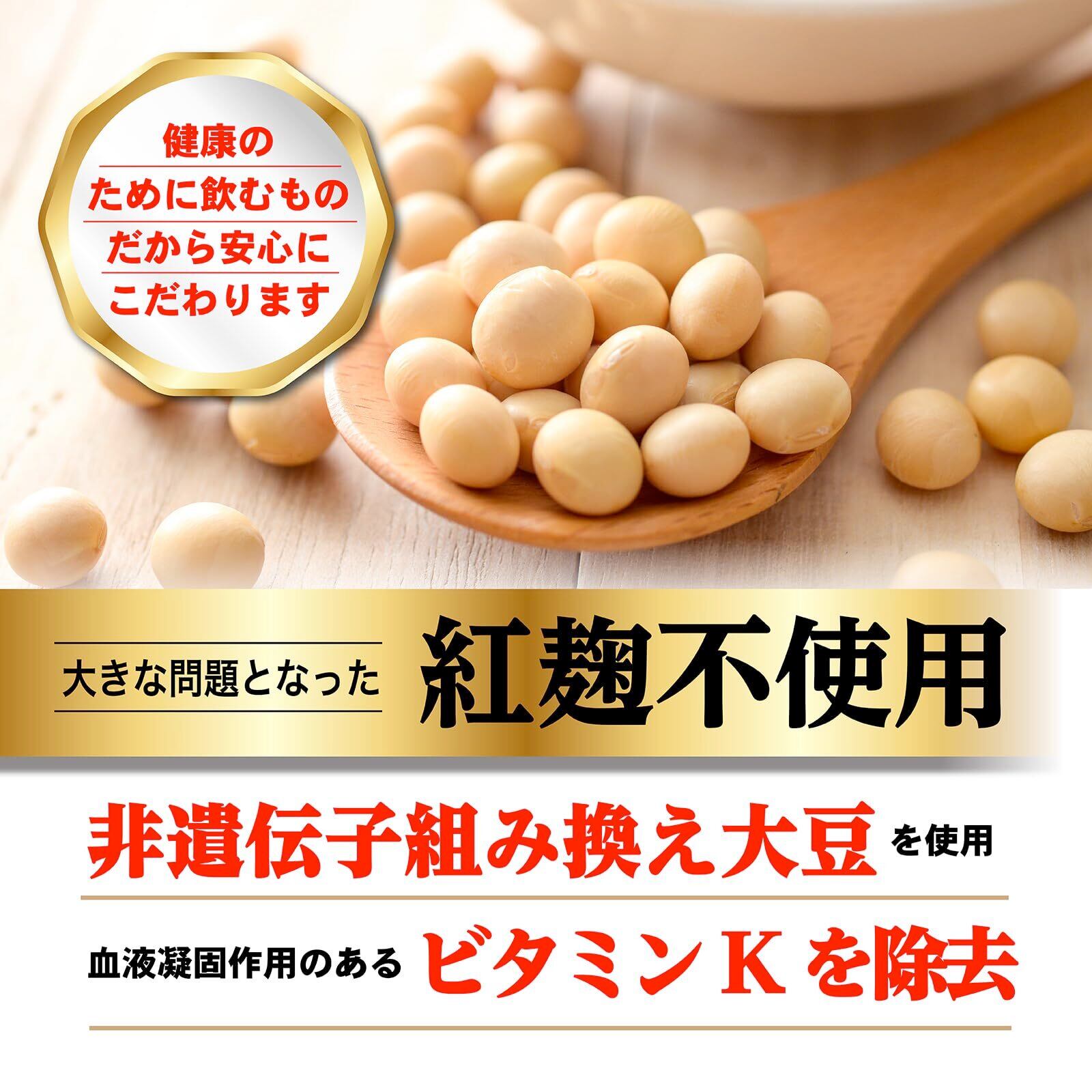 ✅【 ❗非遺伝子組み換え大豆を原材料としたビタミンK除去済みのナットウキナーゼ❗ 】原材料に使用している納豆は非遺伝子組み換え大豆を使用し、血液凝固作用のあるビタミンKを除去したナットウキナーゼを配合。納豆そのものを食べると腸内でビタミンKが産生されますが、納豆キナーゼ8000FUのナットウキナーゼはビタミンKが除去されていると証明された原料を使用しています。