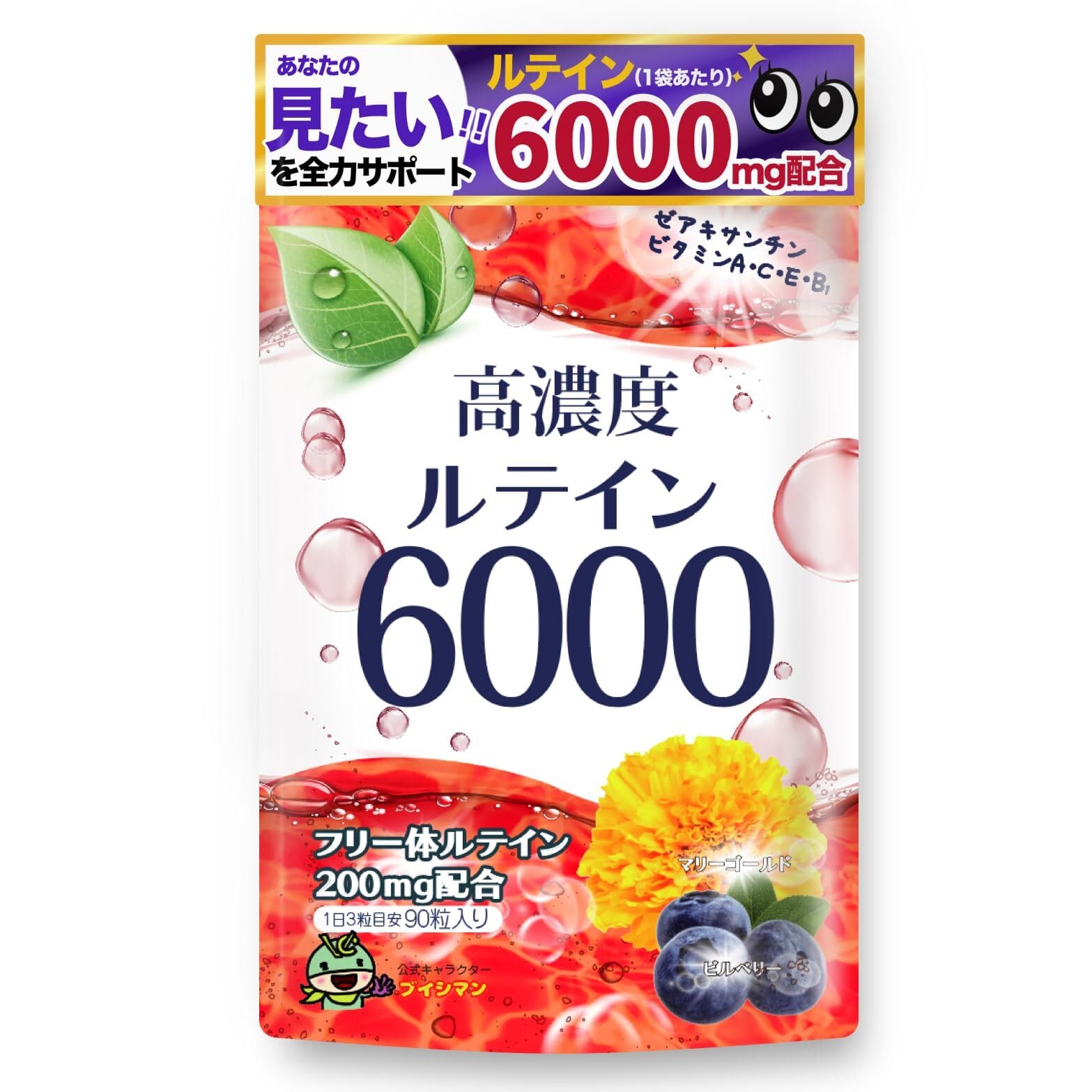 ✅【 ❗マリーゴールドから抽出したフリー体ルテインを200mg配合❗ 】高濃度ルテイン6000はフリー体ルテイン200mgを1日あたり3粒に配合したサプリメントです。本サプリメントに使用しているルテインは合成ルテインを一切使用せずにマリーゴールドから抽出したフリー体ルテインの原料のみを使用しています。