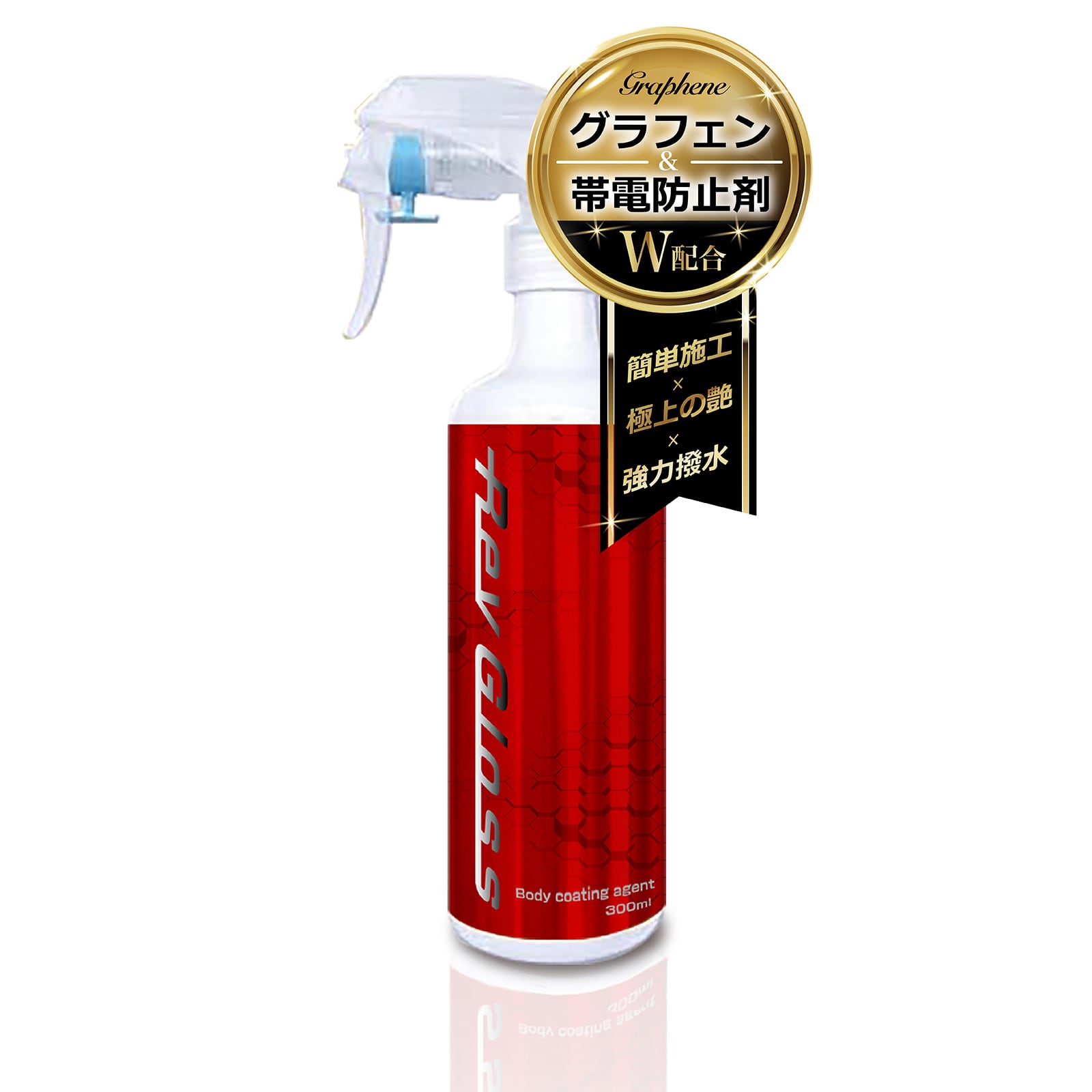 光沢 強撥水 グラフェン 帯電防止剤 W配合 ガラス系 車用ボディコーティング剤 全色対応 RevGloss 300ml