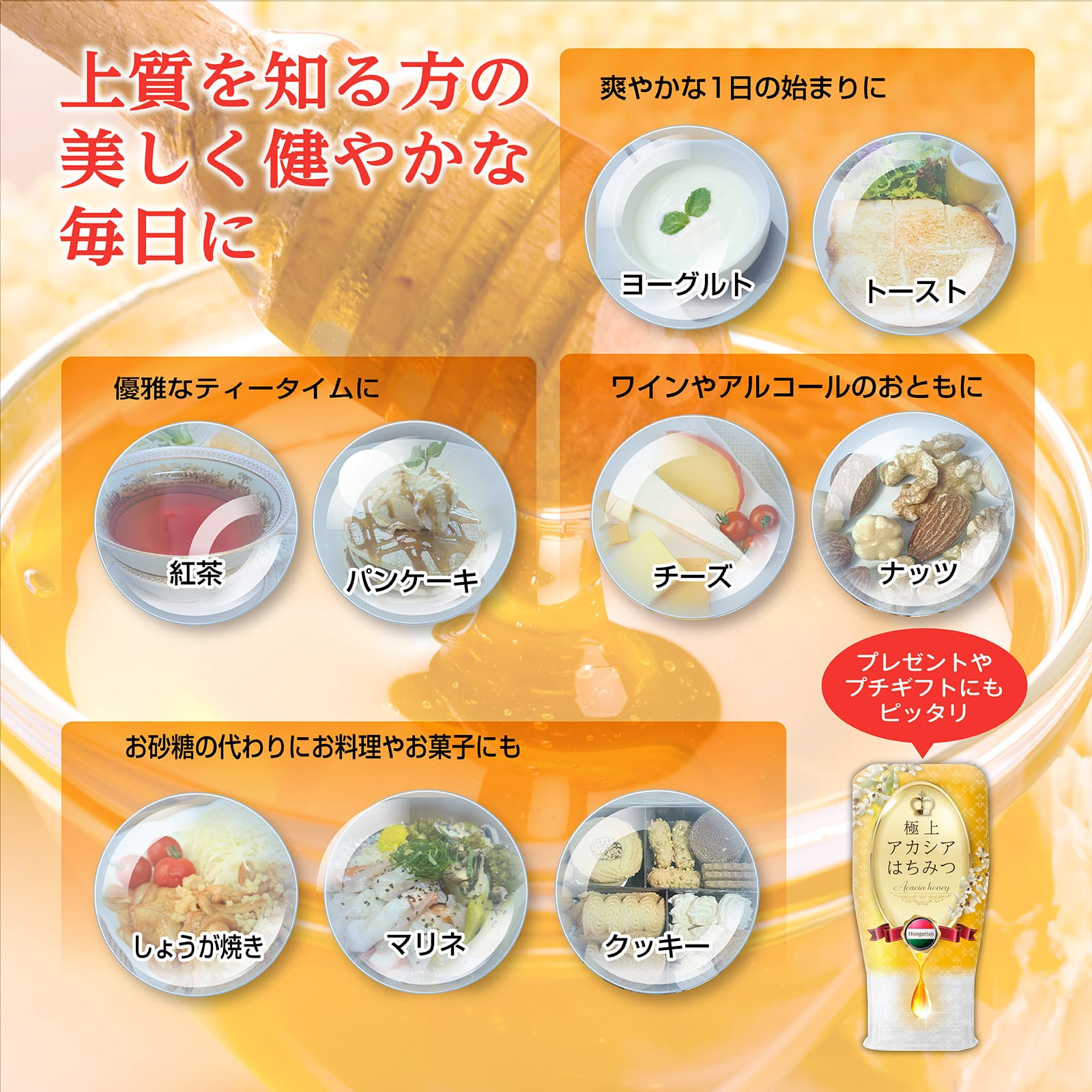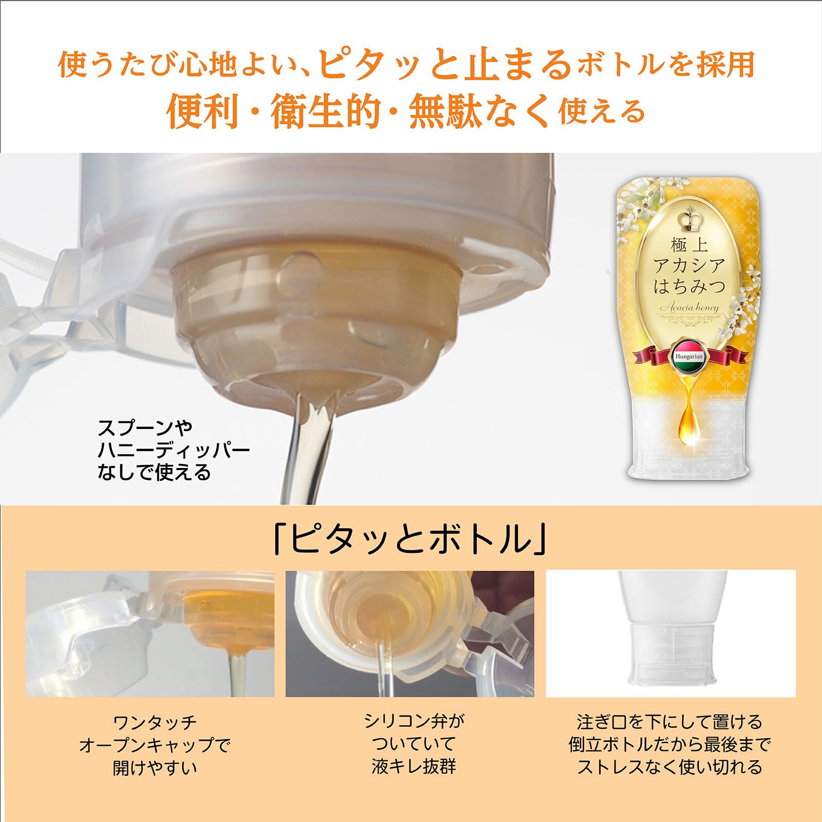 極上アカシアはちみつ 純粋 無添加 ピタッとボトル 気品ある甘み 極上の風味 国内製造 ハチミツ 蜂蜜 ハンガリー産 残留農薬検査済み アカシア はちみつ 300g