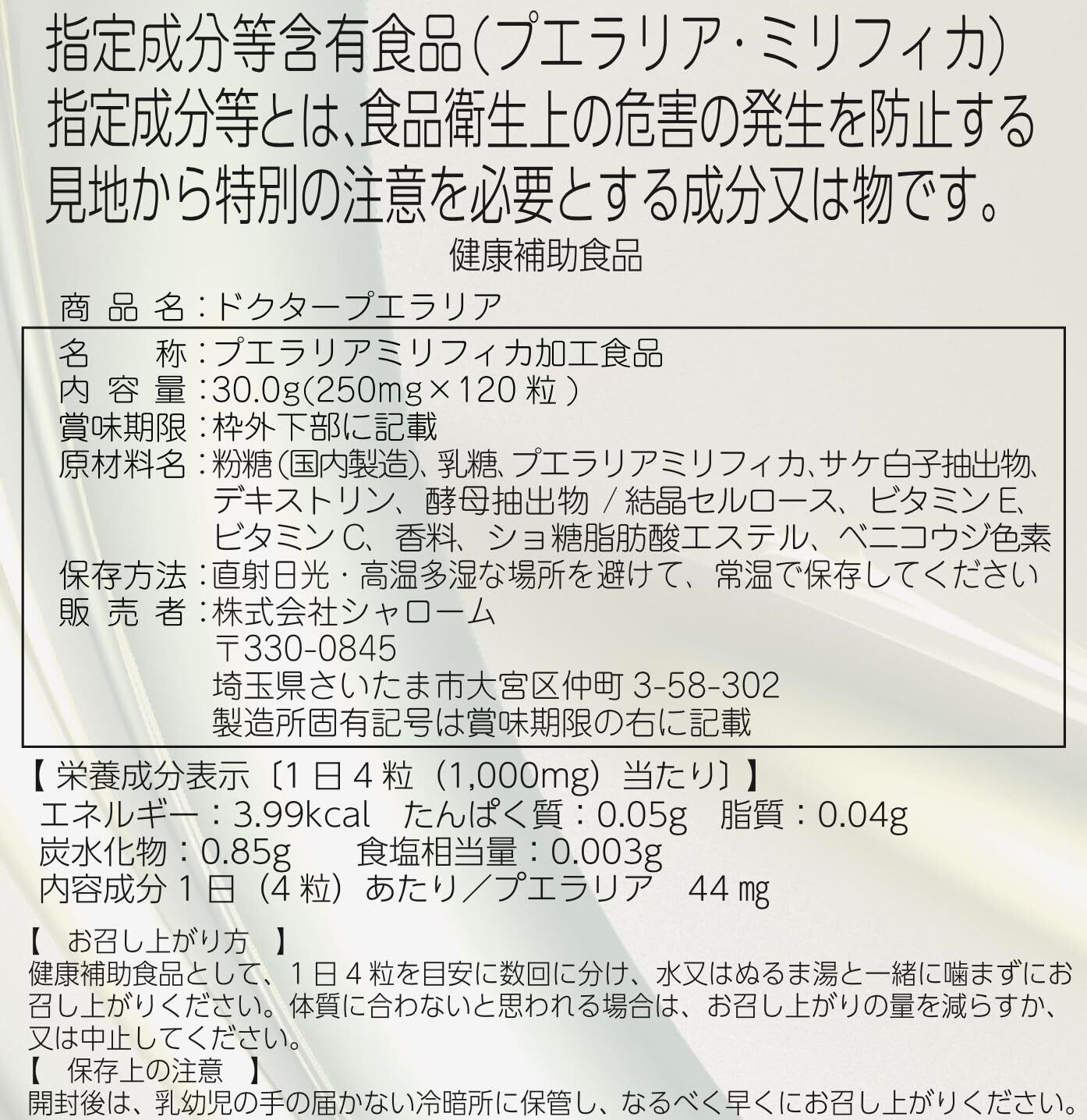 ✅【 ❗プエラリア44mgを配合❗ 】ドクタープエラリアは4粒で44mgのプエラリアが含まれています。プエラリアサプリメントに慣れていない方は最初は少量(1粒)からお試しください。複数粒を一度に摂取するのではなく、体調の様子を見ながら少しずつお召し上がりください。